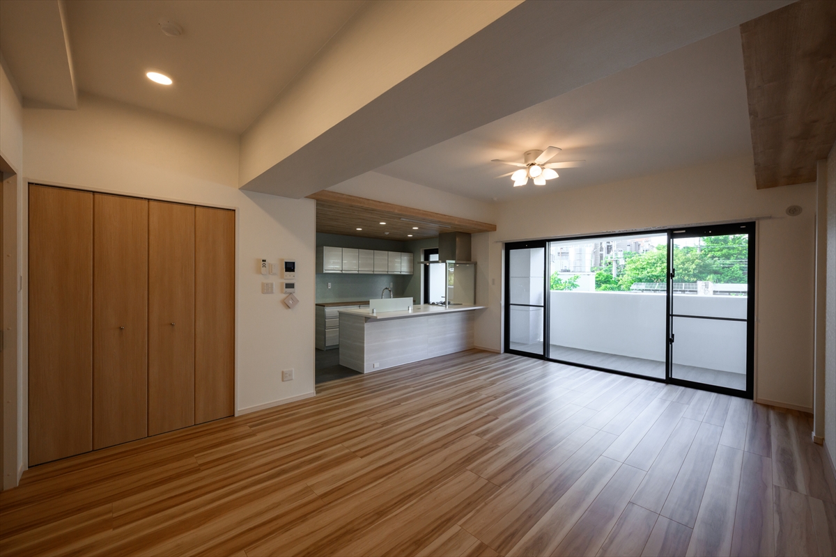 Iタイプ_LDK自然光が降り注ぐ、明るいリビング空間。南向きで日当たり良好。